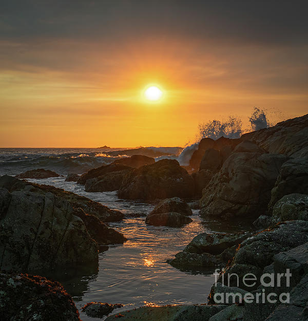 Golden Hour at Lone Ranch Beach as the ocean crashes against the rocks and washes into an inlet along the beach. Southern Oregon Coast close to Brookings.